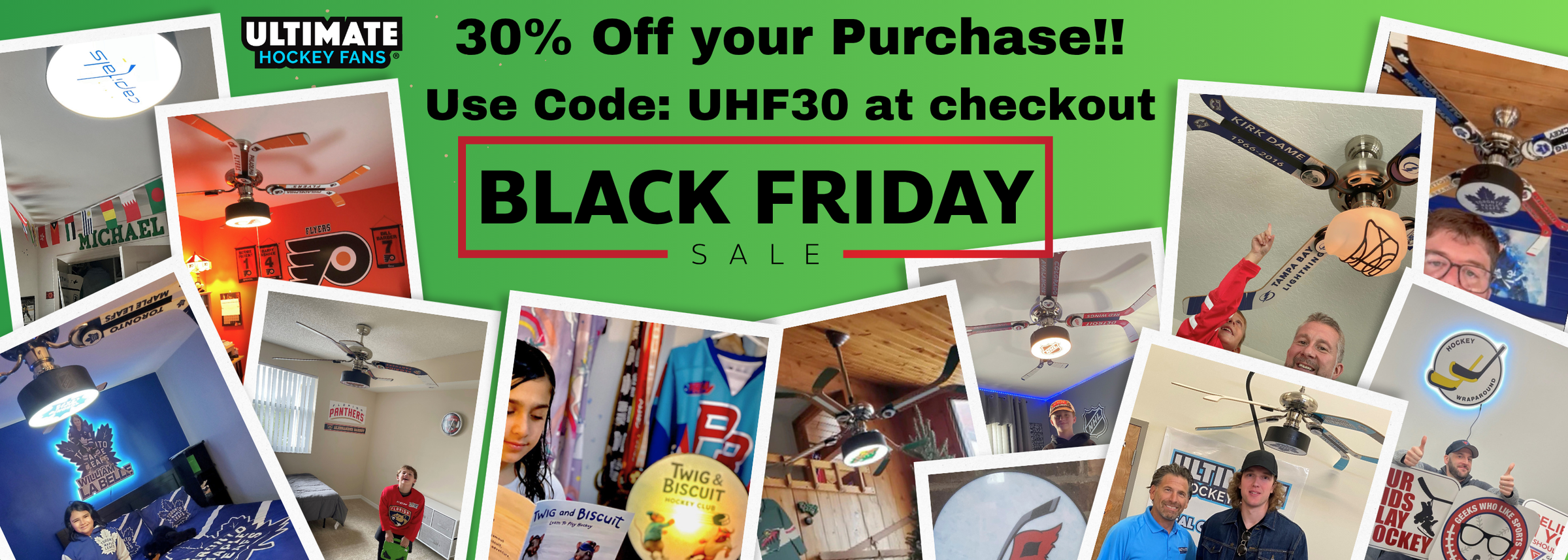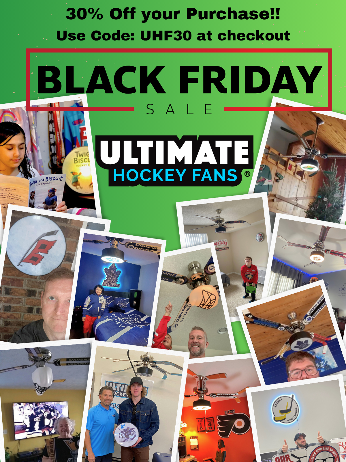 We show our passion for hockey by manufacturing unique hockey ceiling fans, puck light fixtures, and sports wall art that will add the “wow factor” to your home. Choose your favorite team, combine teams, or create your own custom artwork.