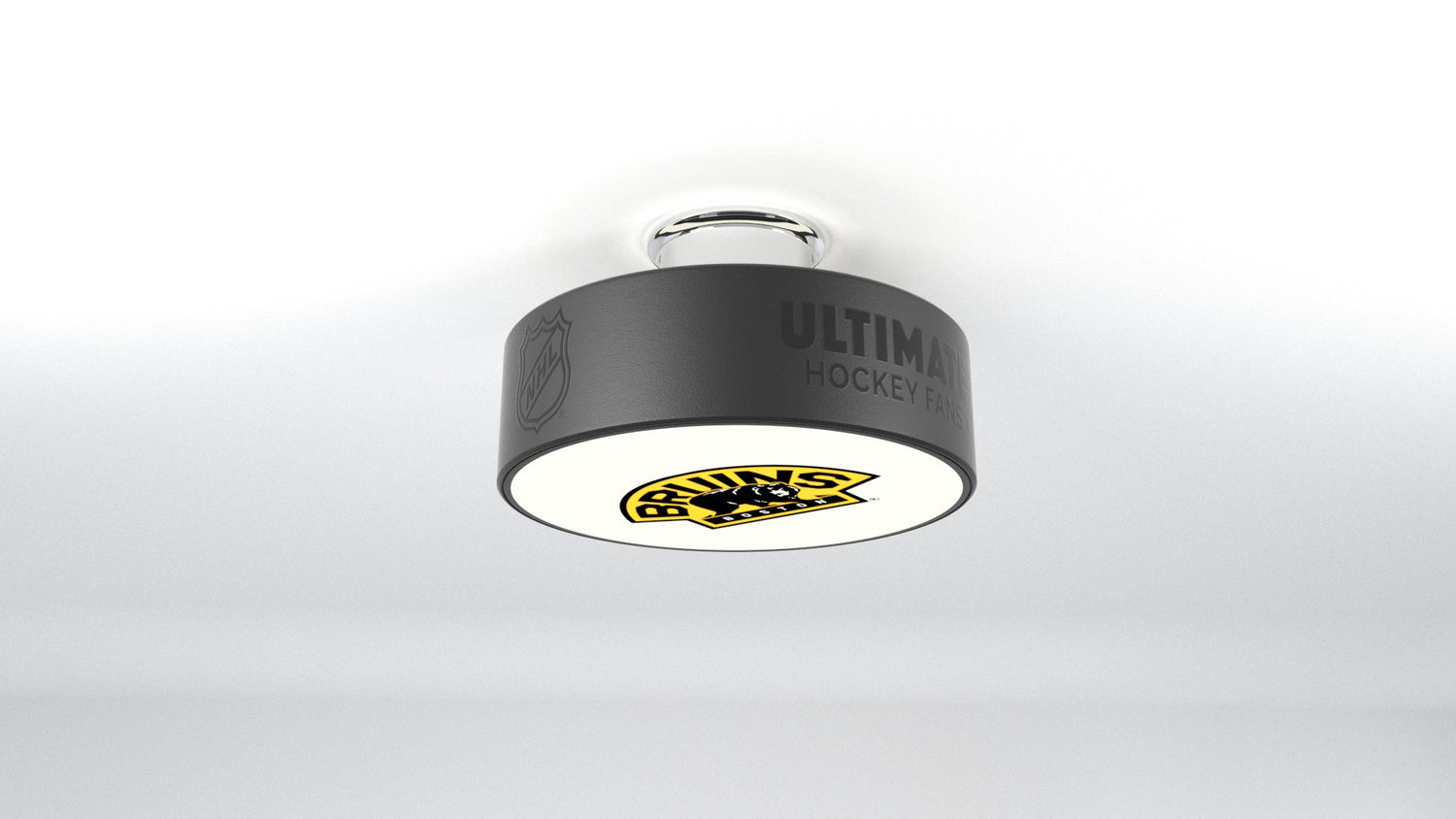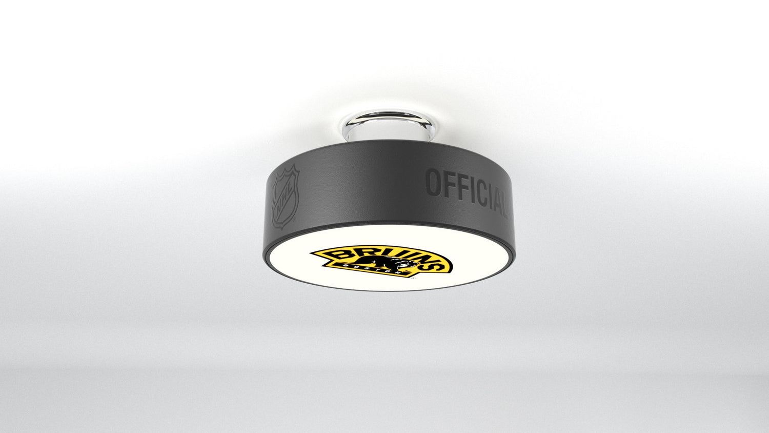 The Boston Bruins® hockey puck light fixture is designed to illuminate any of your favorite Boston Bruins® logos into any room.