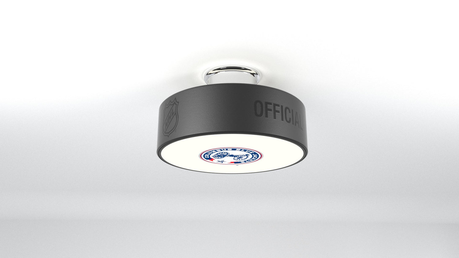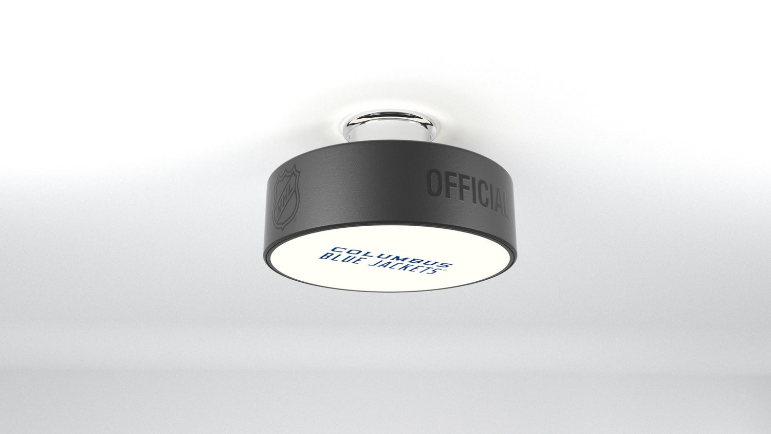 The Columbus Blue Jackets® hockey puck light fixture is designed to illuminate any of your favorite Columbus Blue Jackets® logos into any room.