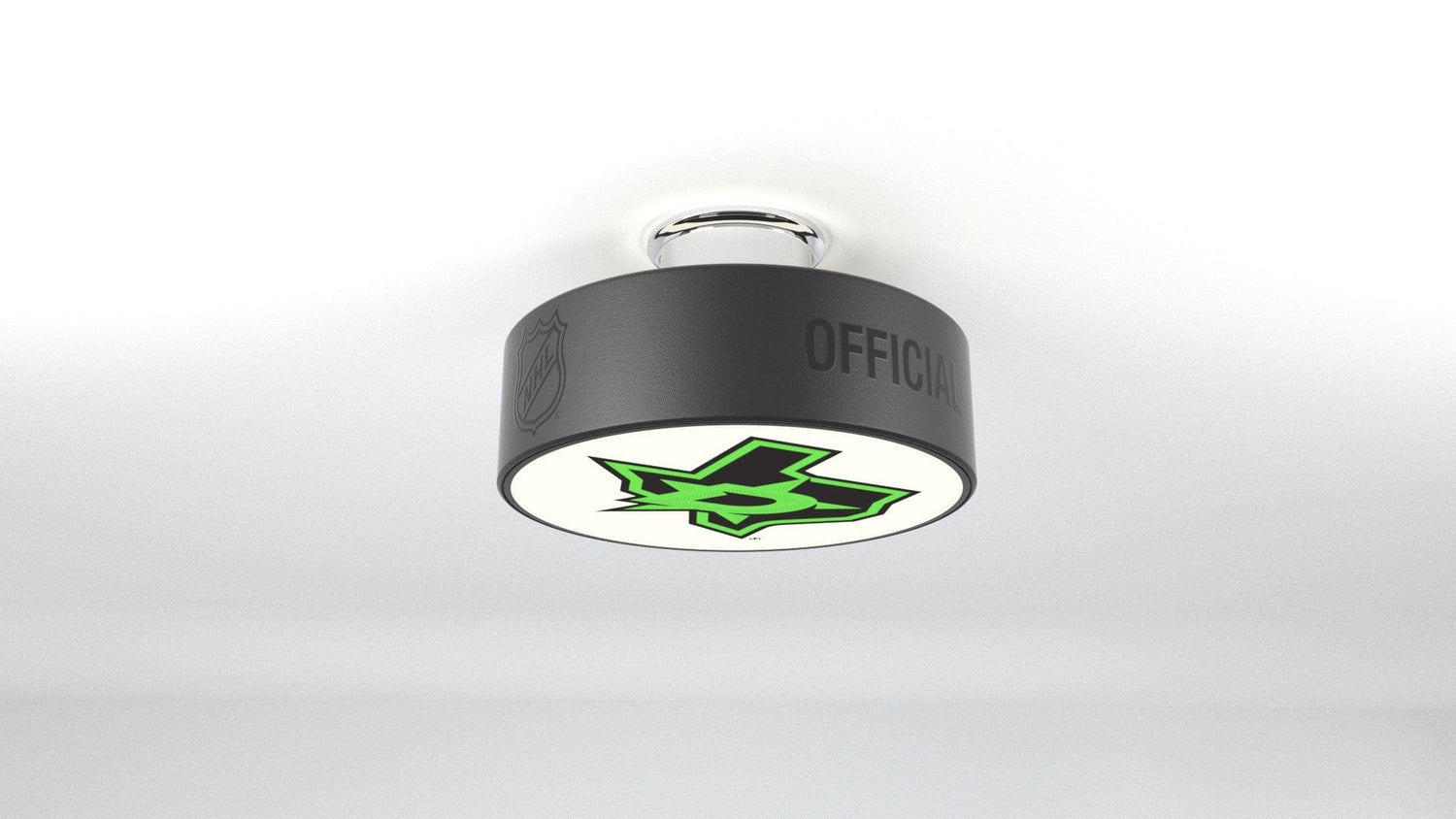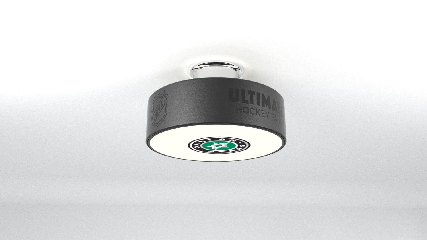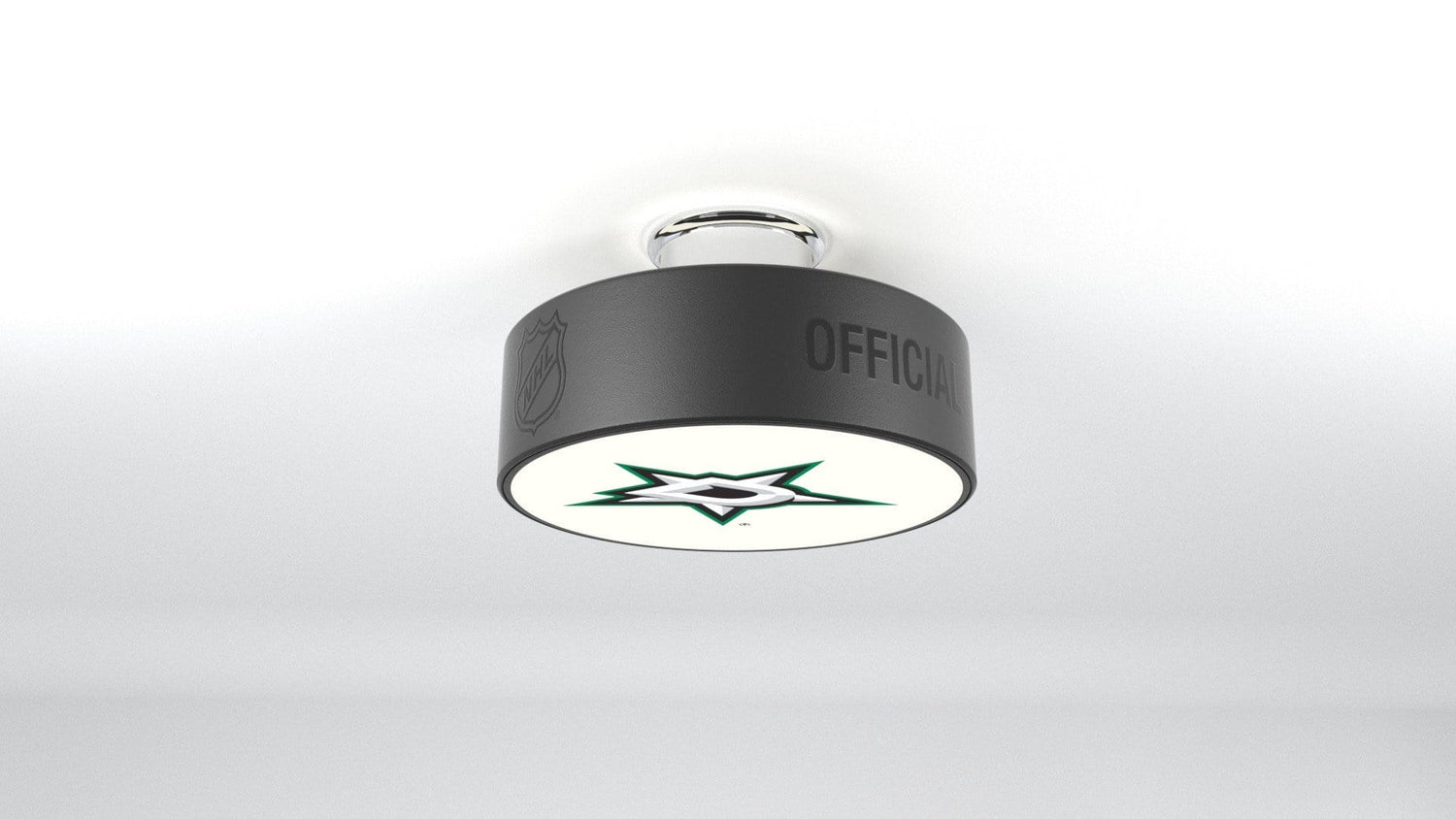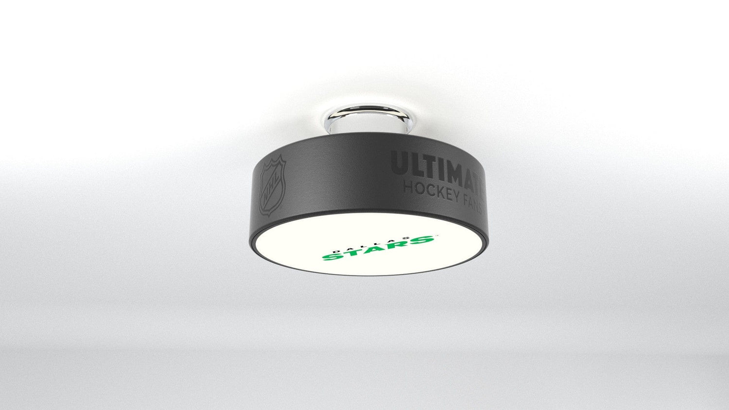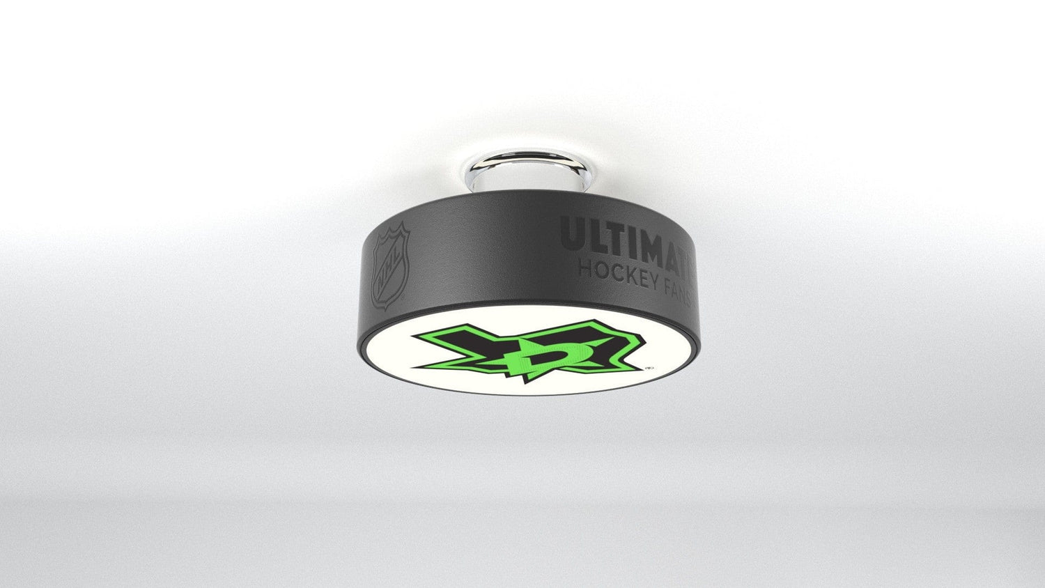 Dallas Stars™ officially licensed NHL hockey puck light fixture illuminates your choice of various Dallas Stars™ official logos.