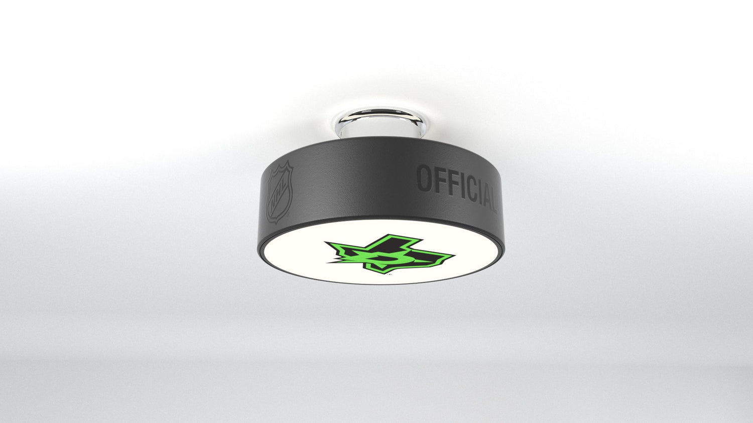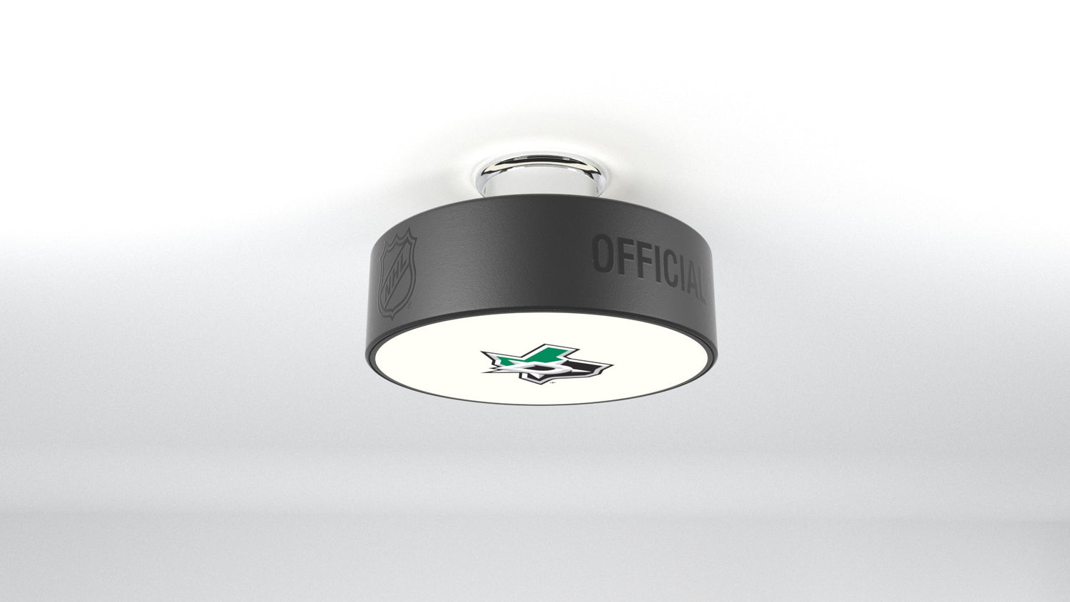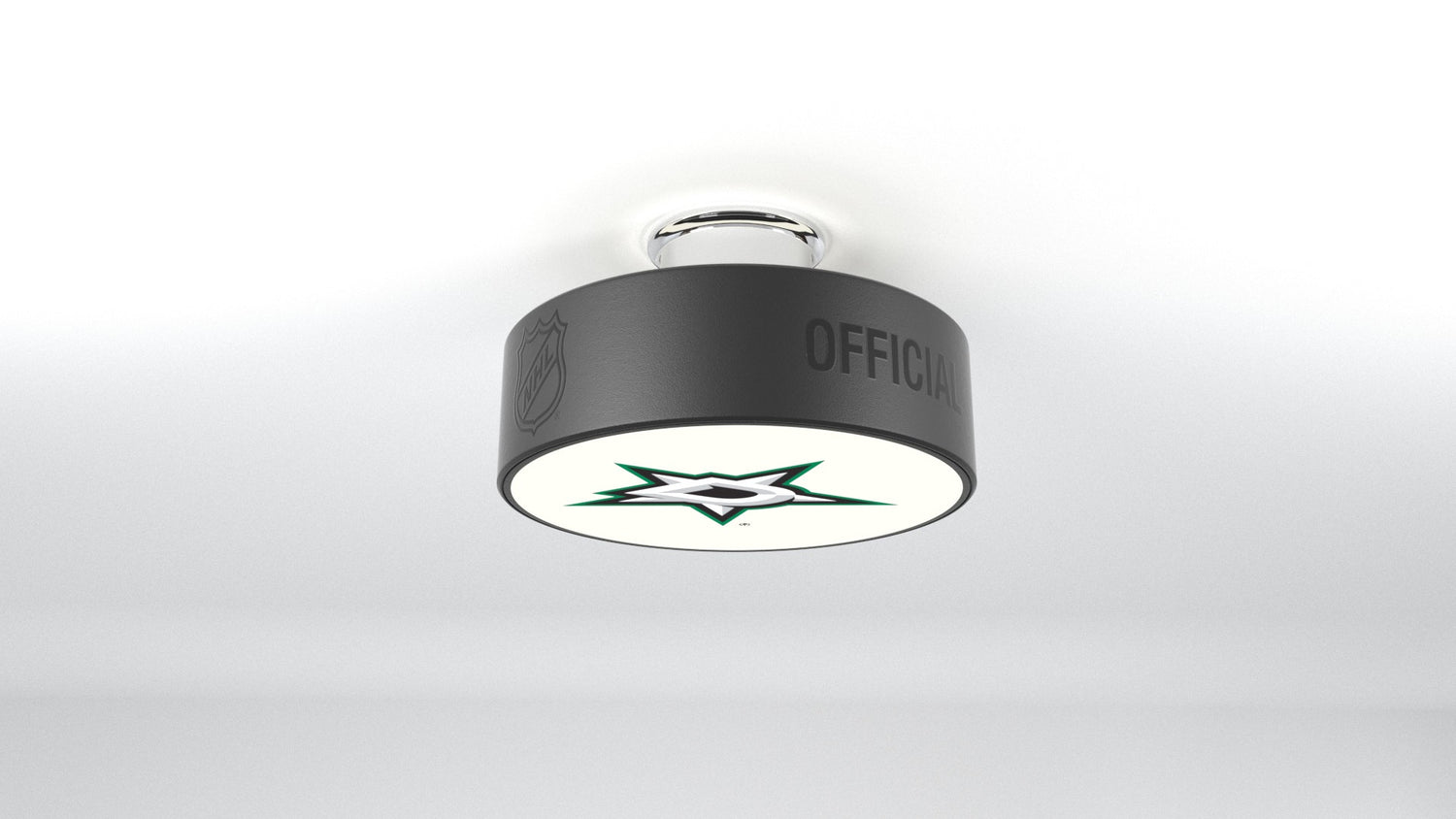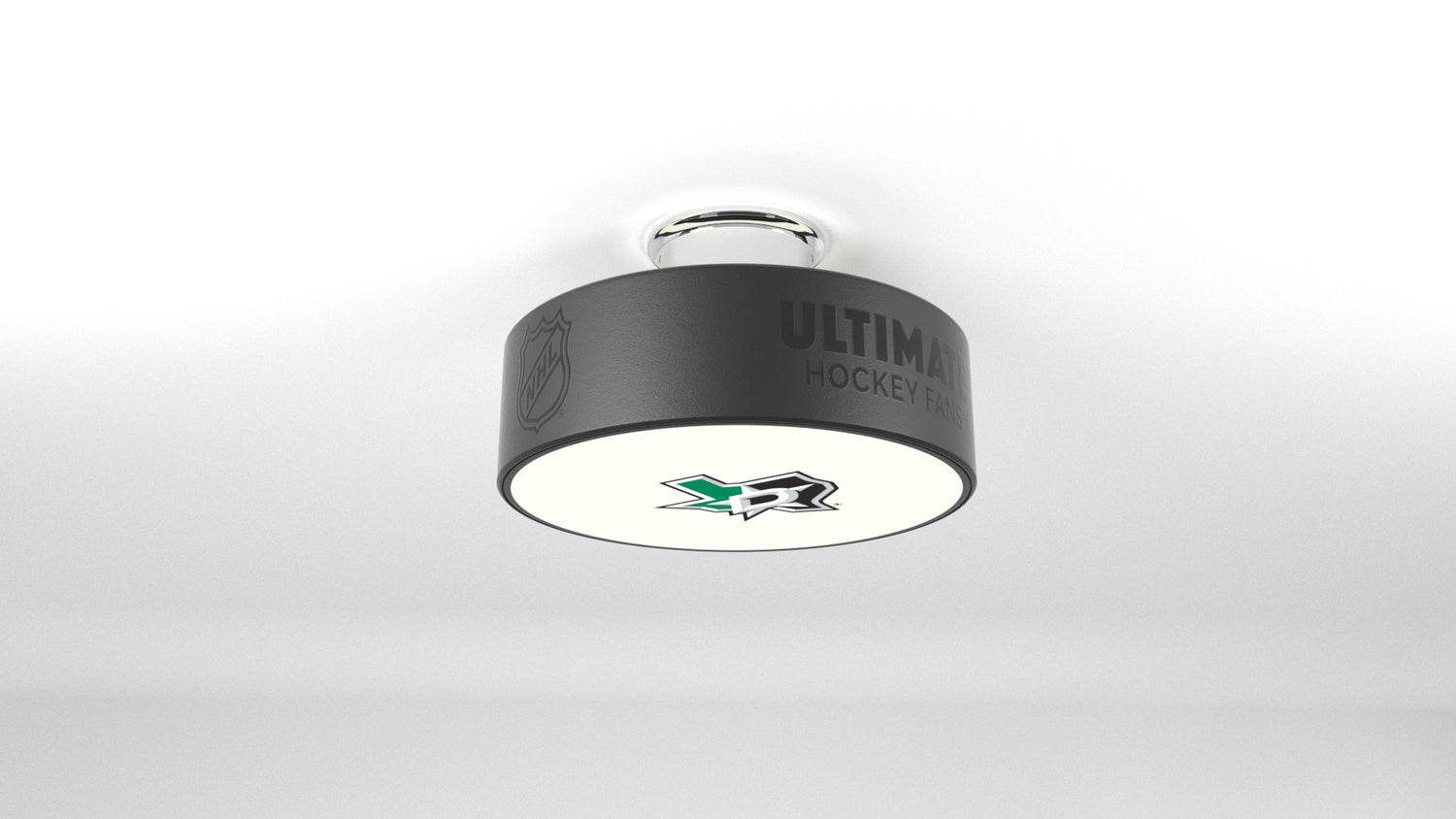 The Dallas Stars™ hockey puck light fixture is designed to illuminate any of your favorite Dallas Stars™ logos into any room.