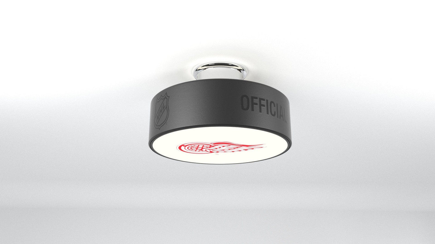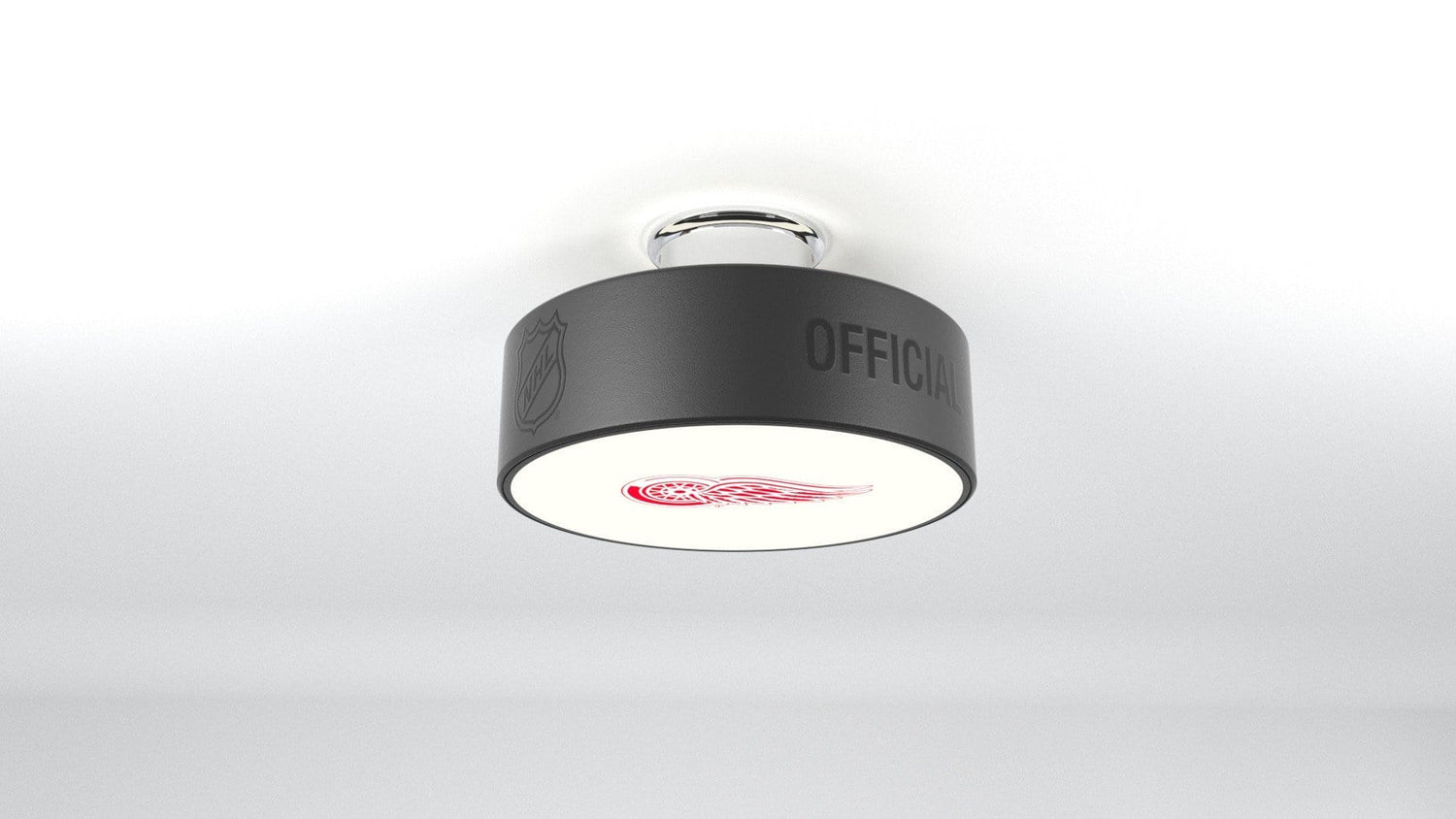 Detroit Red Wings® officially licensed NHL hockey puck light fixture illuminates your choice of various Detroit Red Wings® official logos.