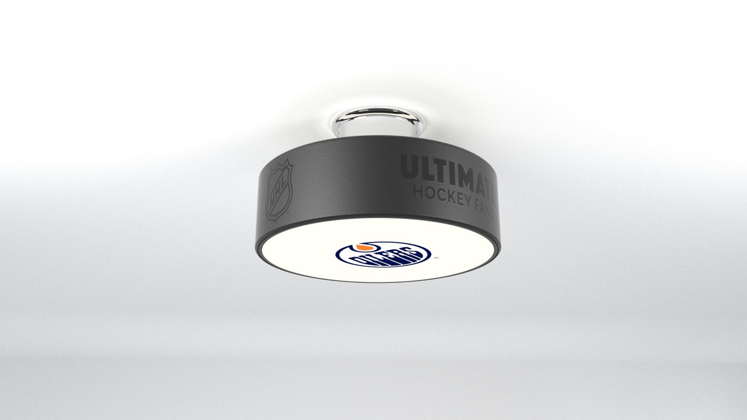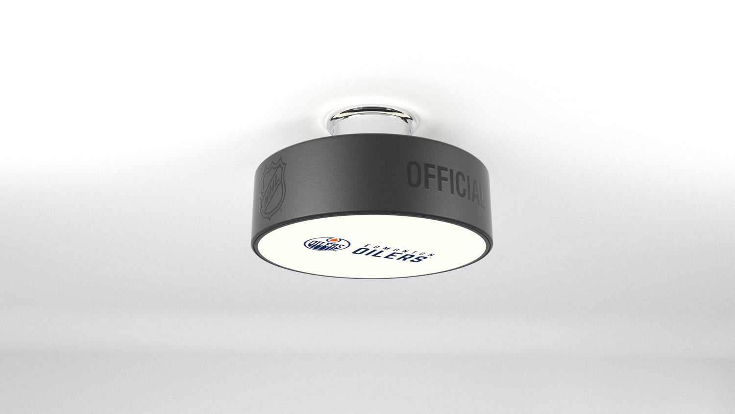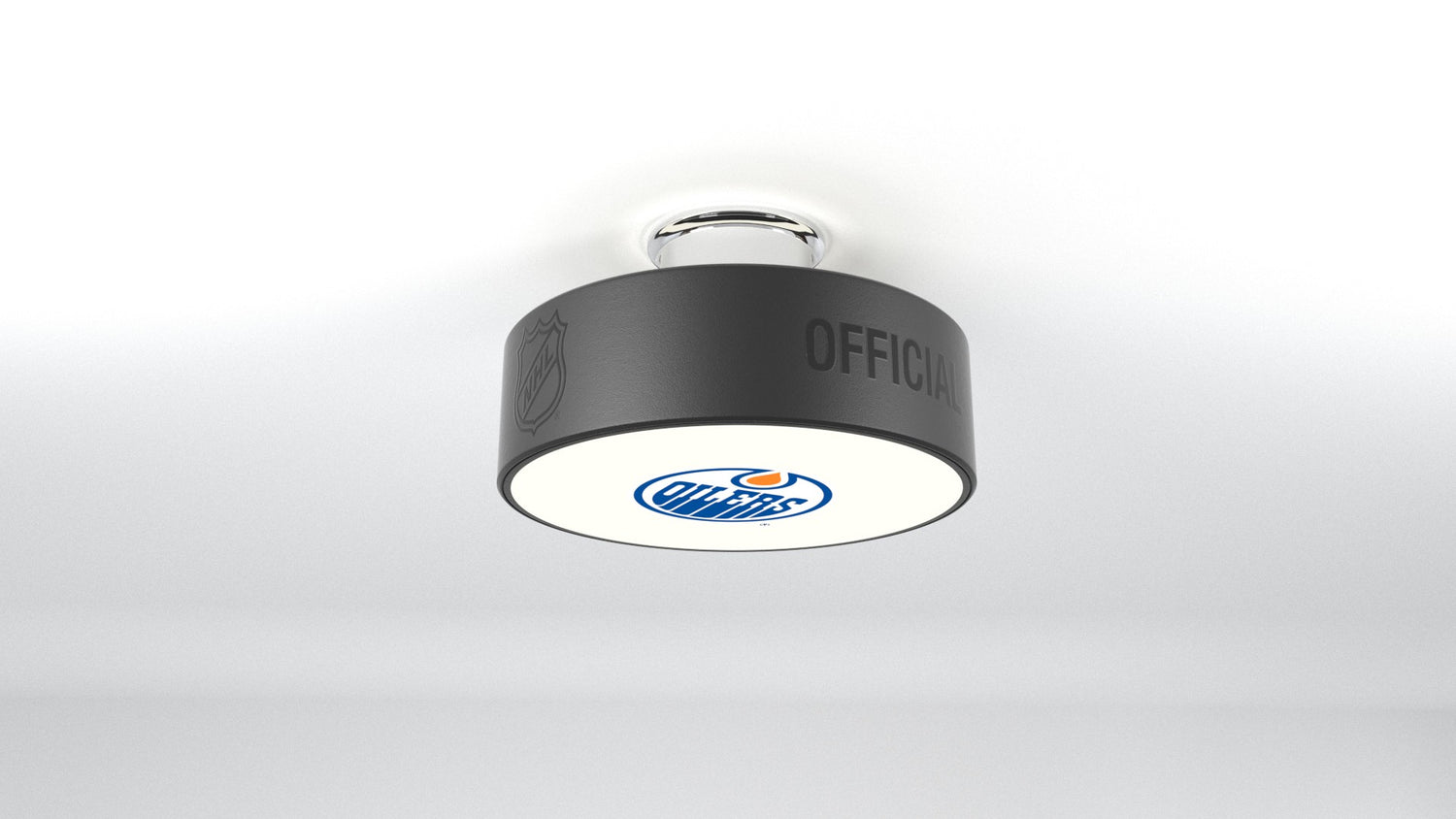 The Edmonton Oilers® hockey puck light fixture is designed to illuminate any of your favorite Edmonton Oilers® logos into any room.