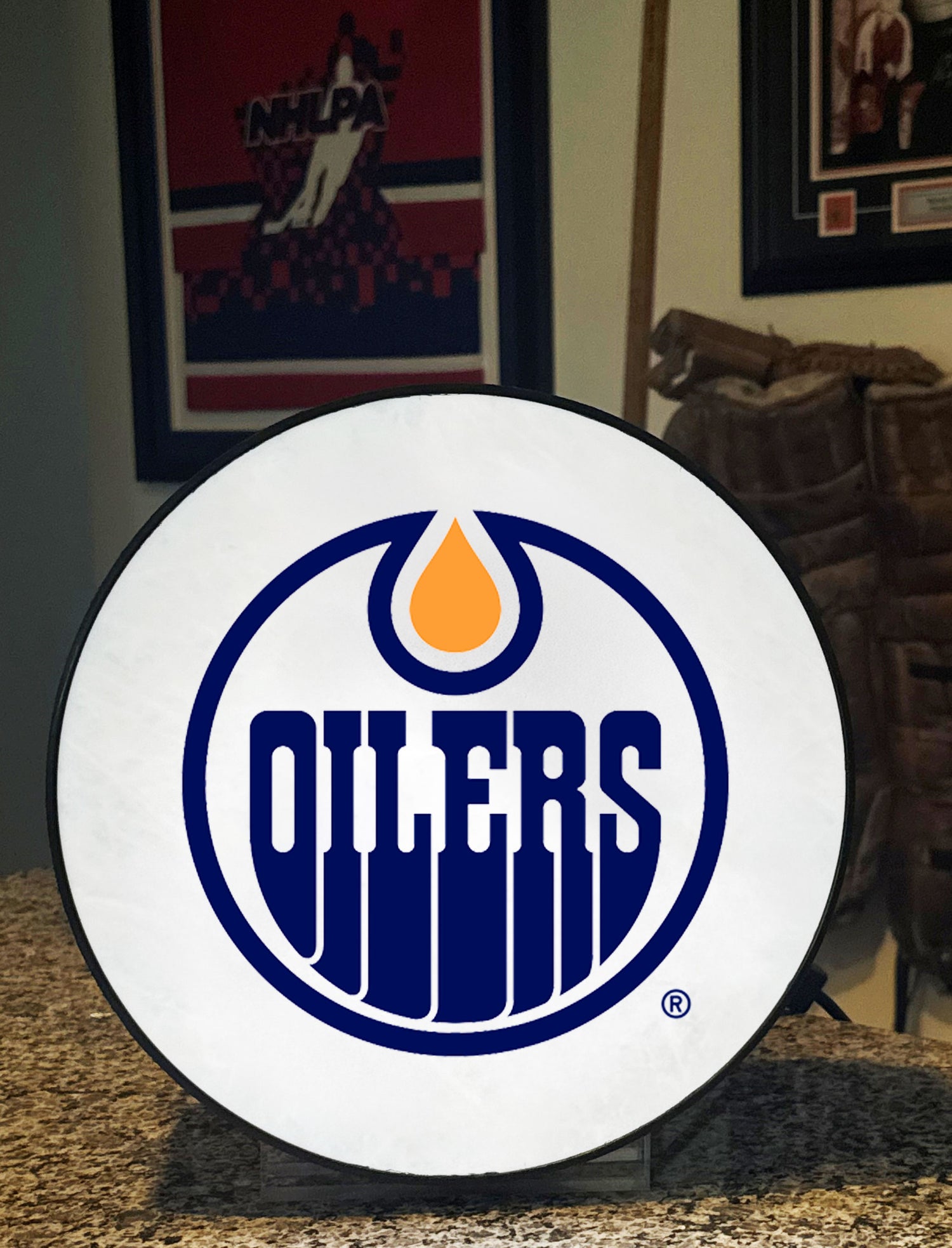 The Hockey Puck Lamp is the perfect way to display your Edmonton Oilers® pride in any room. This unique lamp is designed to bring the spirit of the rink directly into your home or office.