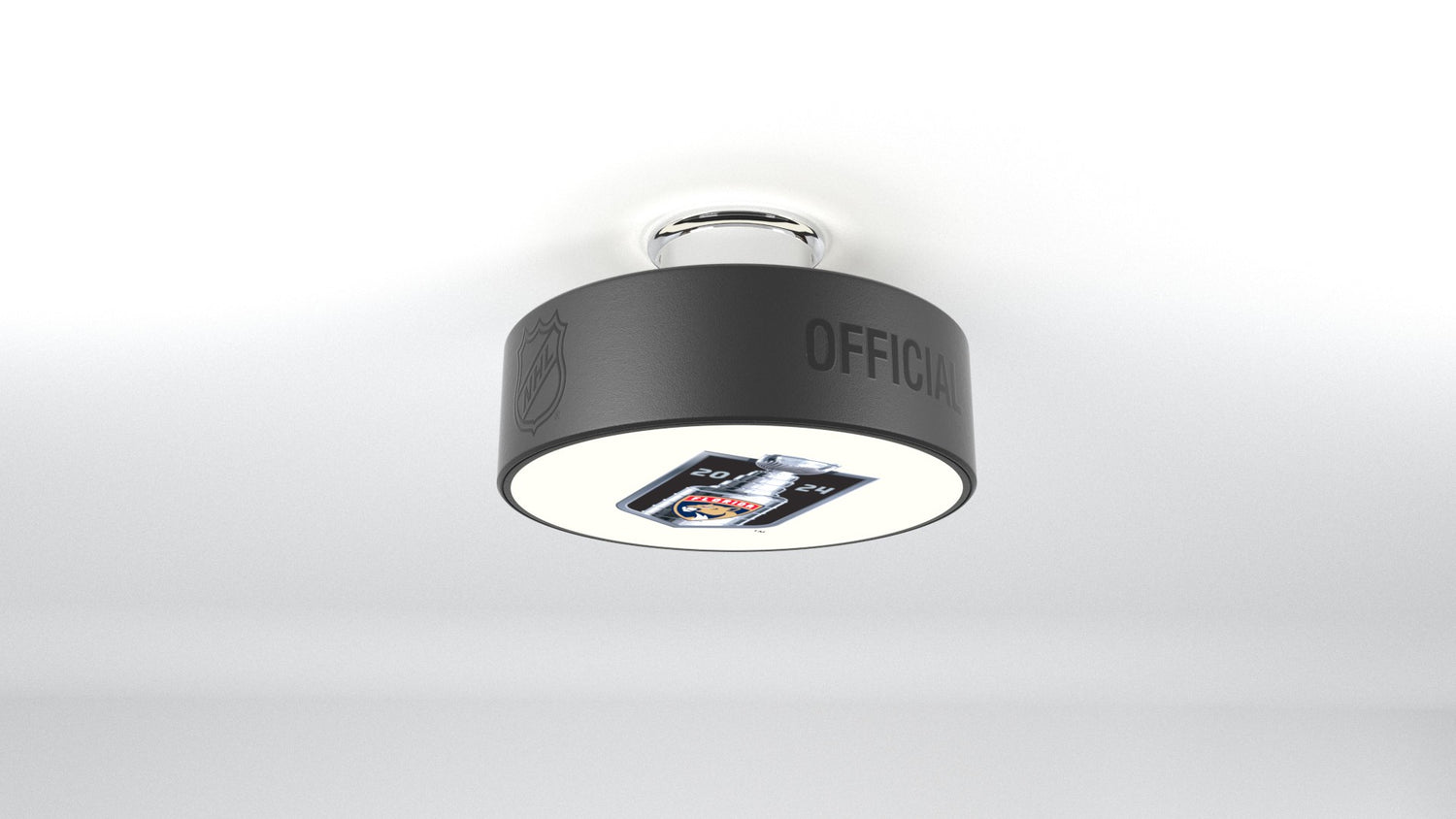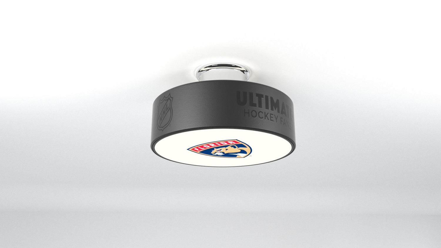 The Florida Panthers® hockey puck light fixture is designed to illuminate any of your favorite Florida Panthers® logos into any room.