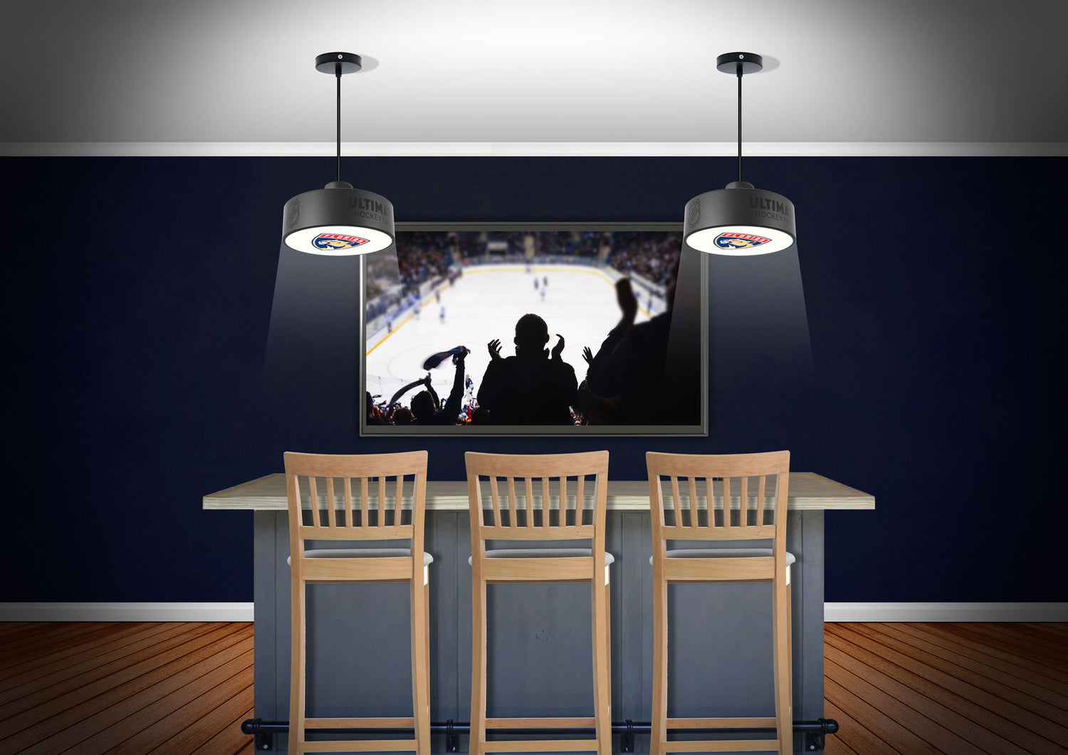 Hang it above your bar, desk, or fan cave to illuminate your space with authentic Florida Panthers® team spirit. With crisp team graphics and a sleek detailing, the Florida Panthers® hockey puck pendant light is a standout centerpiece that proudly displays your dedication to the Panthers- both on and off the ice.