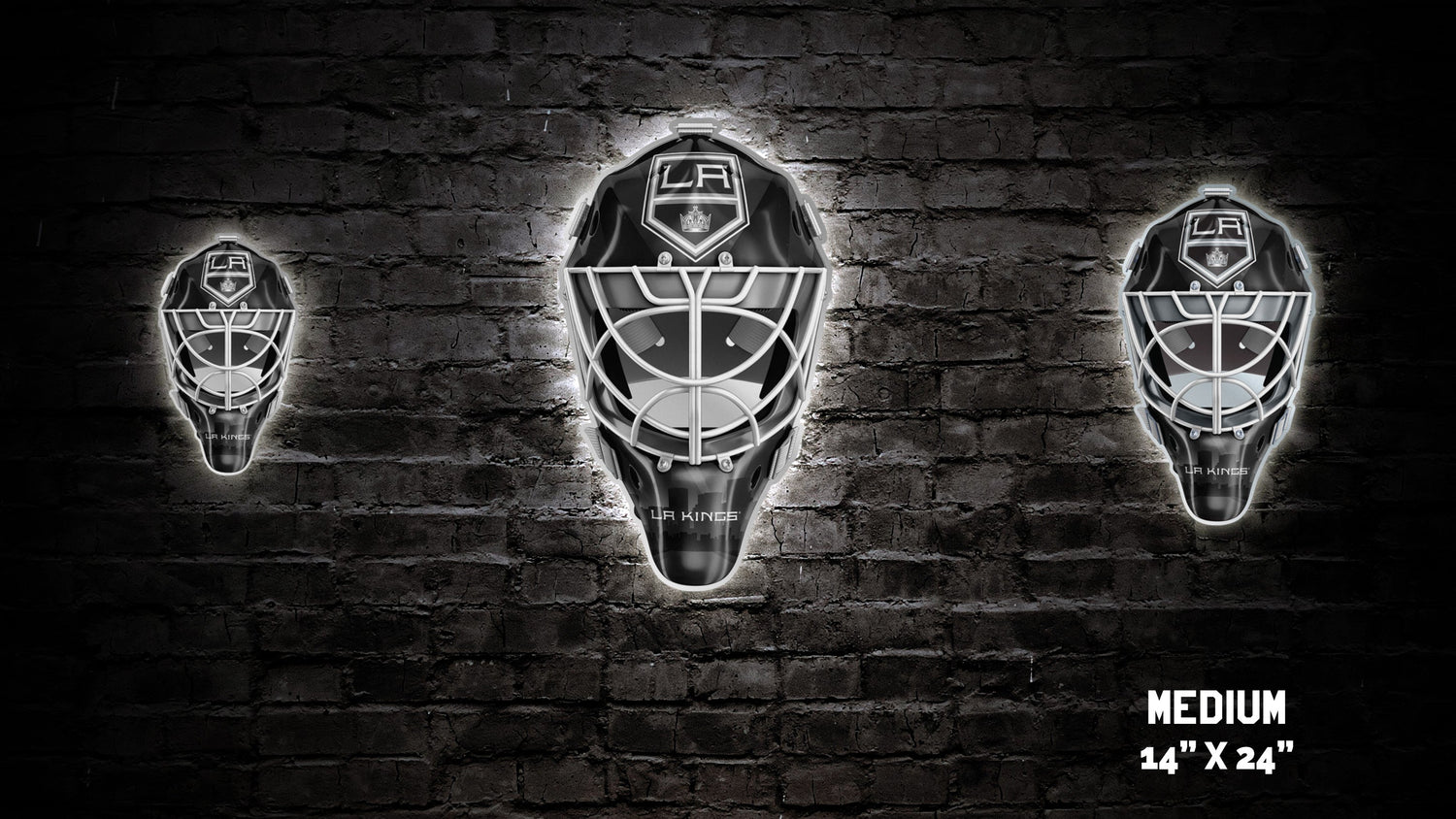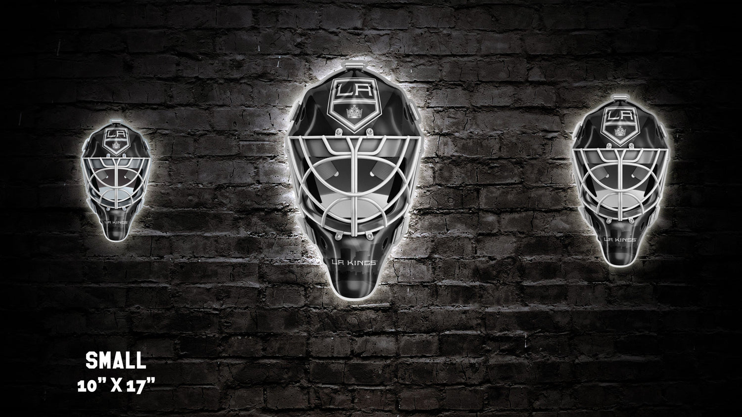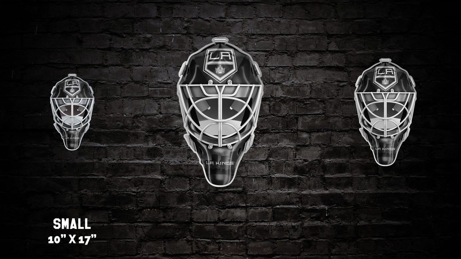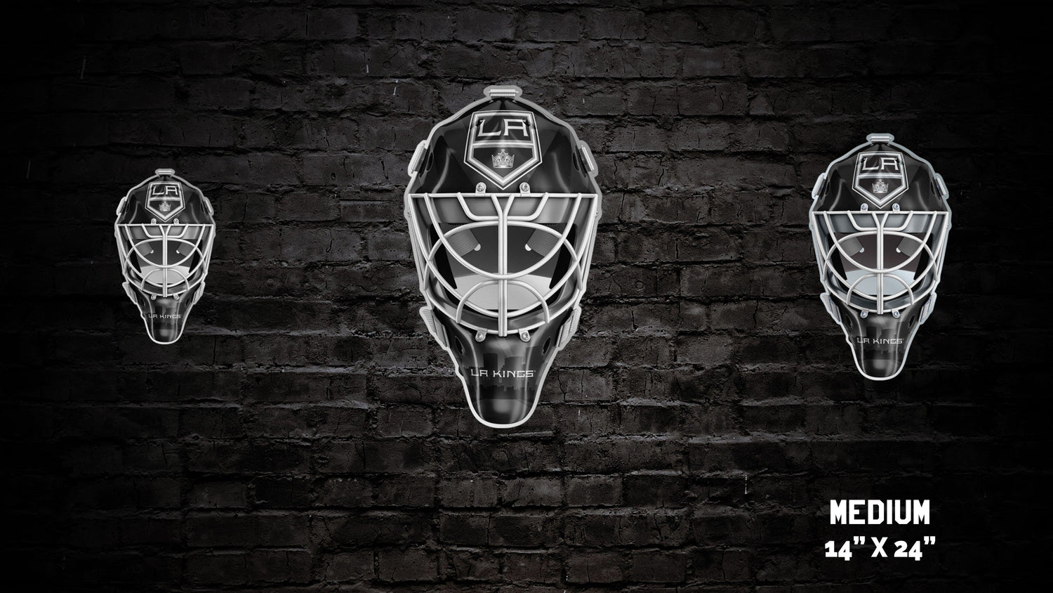 Our custom LA Kings® Goalie Mask wall art is a gorgeous show piece for any fan cave, kids room, she-shed, man cave, bar, den, game-room, or any other sports themed room. All of our artwork is designed and manufactured in the US.