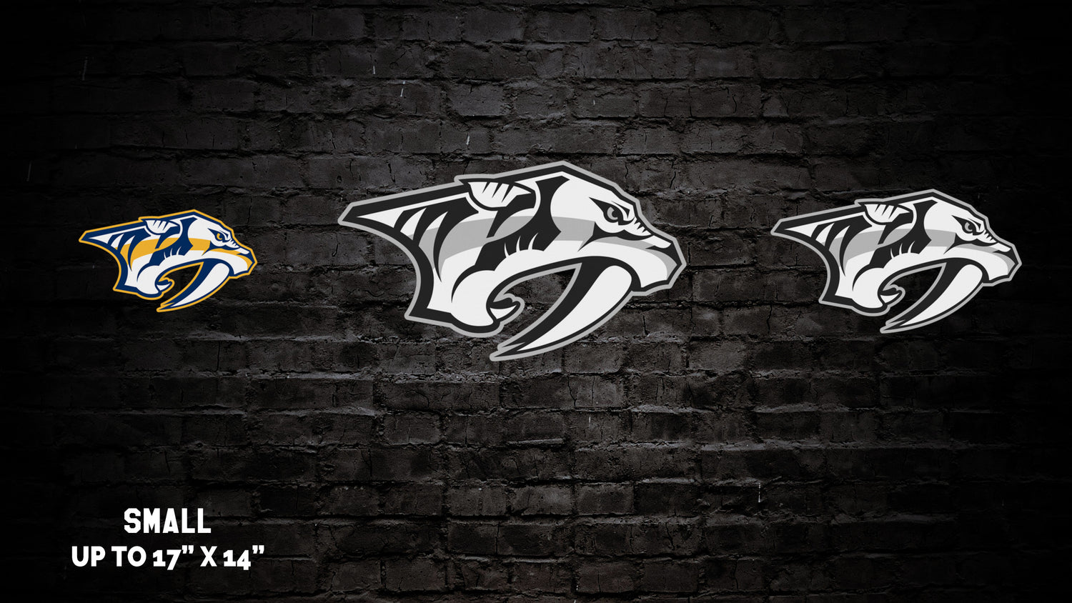 - Small - From 17"x10" to 17"x16" - depending on wall art piece style, Circular Logo Up to 14".