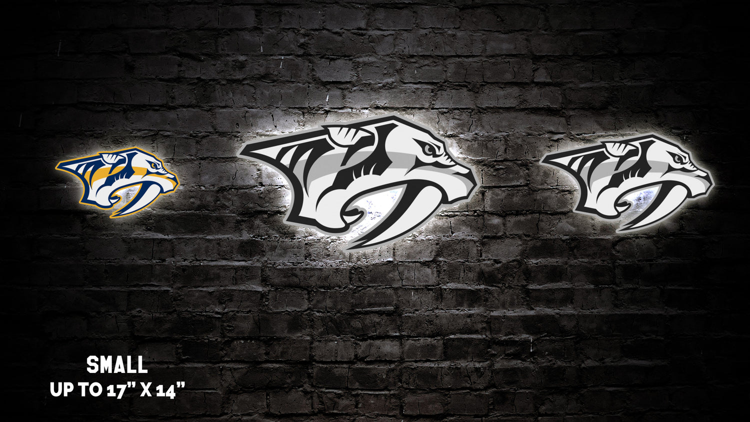 Our custom Nashville Predators® wall art is a gorgeous show piece for any fan cave, kids room, she-shed, man cave, bar, den, game-room, or any other sports themed room. All of our artwork is designed and manufactured in the US.