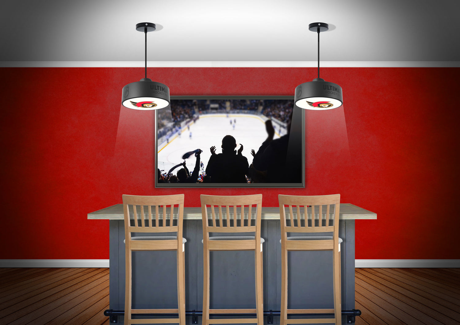 Hang it above your bar, desk, or fan cave to illuminate your space with authentic Ottawa Senators® team spirit.  With crisp team graphics and a sleek detailing, the Ottawa Senators® hockey puck pendant light is a standout centerpiece that proudly displays your dedication to the Senators- both on and off the ice.