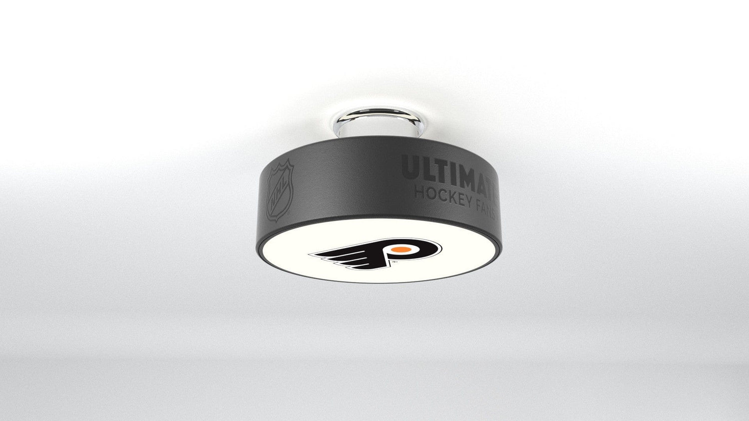 Philadelphia Flyers® officially licensed NHL hockey puck light fixture illuminates your choice of various Philadelphia Flyers® official logos.