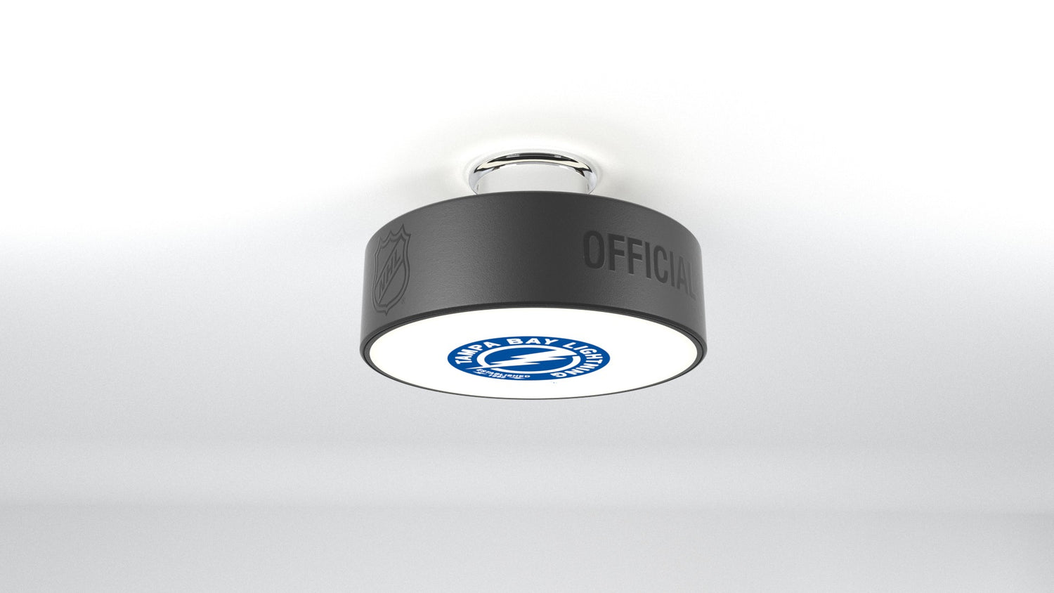 The Tampa Bay Lightning® hockey puck light fixture is designed to illuminate any of your favorite Tampa Bay Lightning® logos into any room.