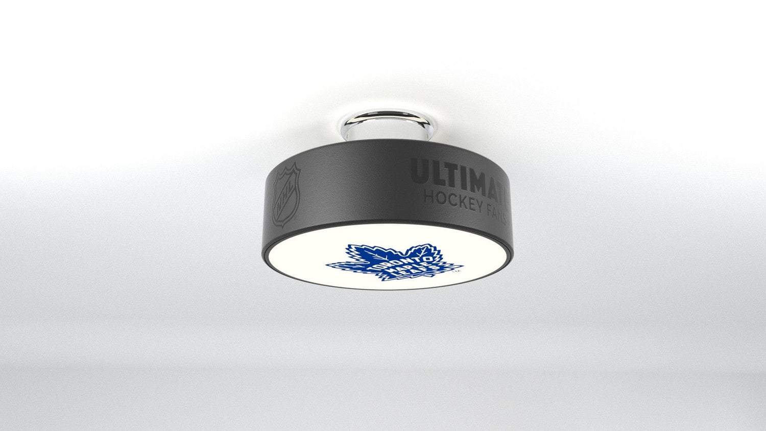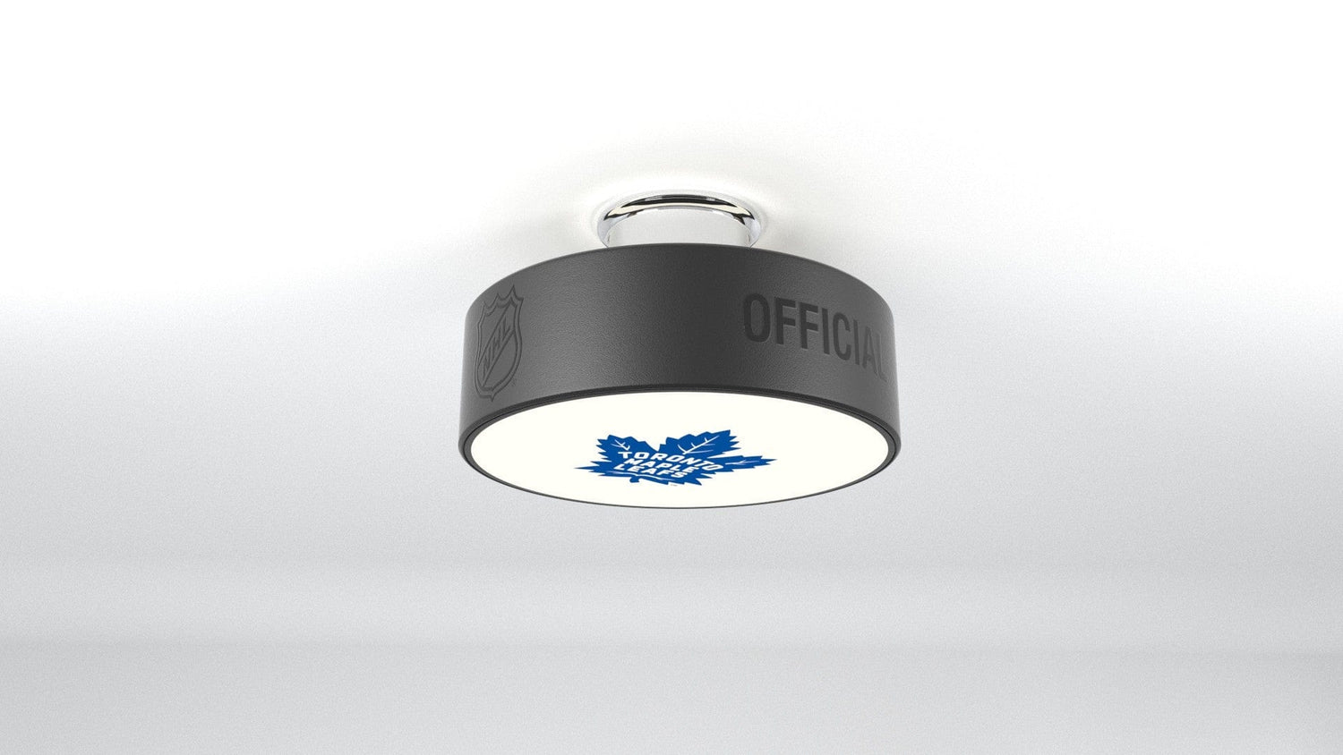 Toronto Maple Leafs® officially licensed NHL hockey puck light fixture illuminates your choice of various Toronto Maple Leafs® official logos.