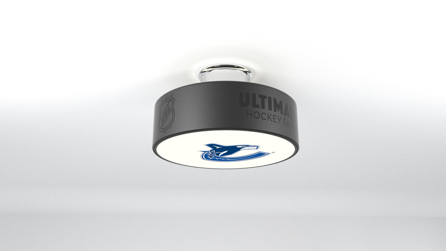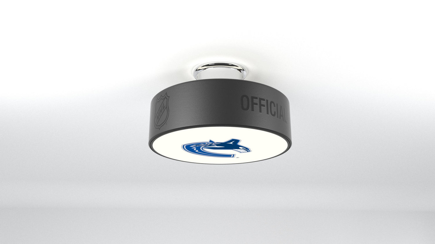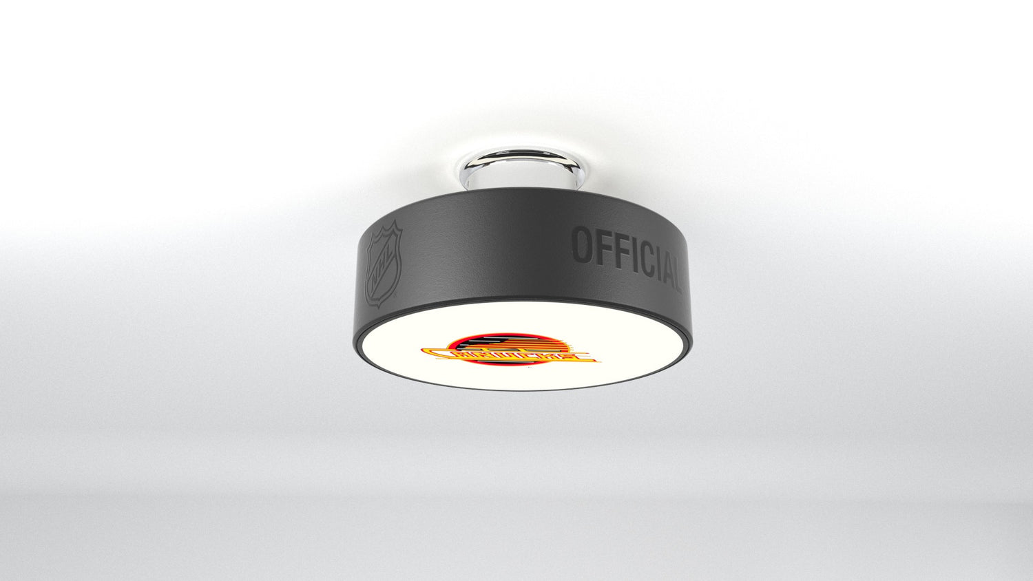 The Vancouver Canucks® hockey puck light fixture is designed to illuminate any of your favorite Vancouver Canucks® logos into any room.
