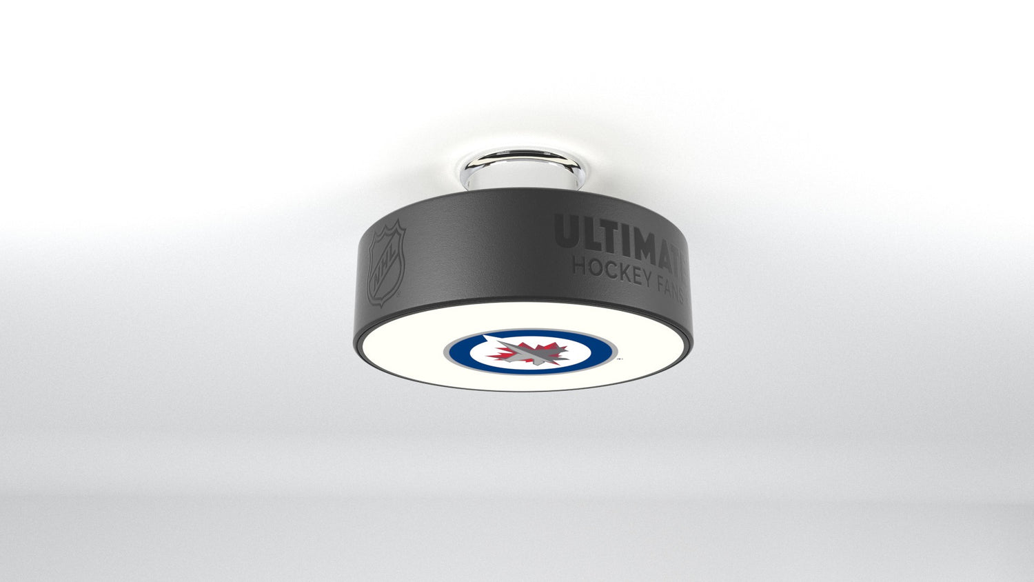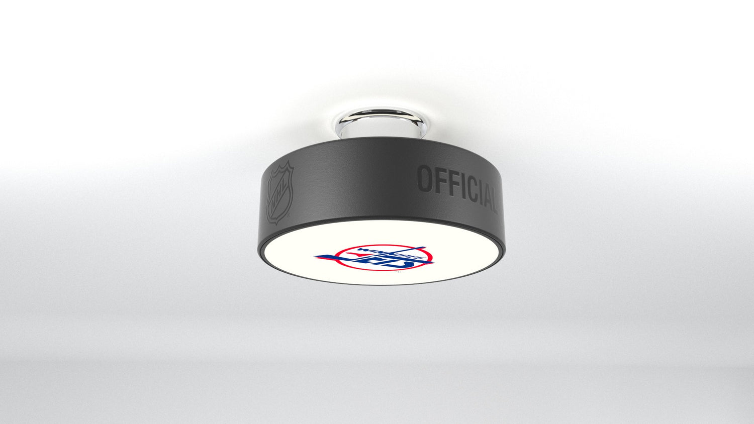 The Winnipeg Jets™ hockey puck light fixture is designed to illuminate any of your favorite Winnipeg Jets™ logos into any room.